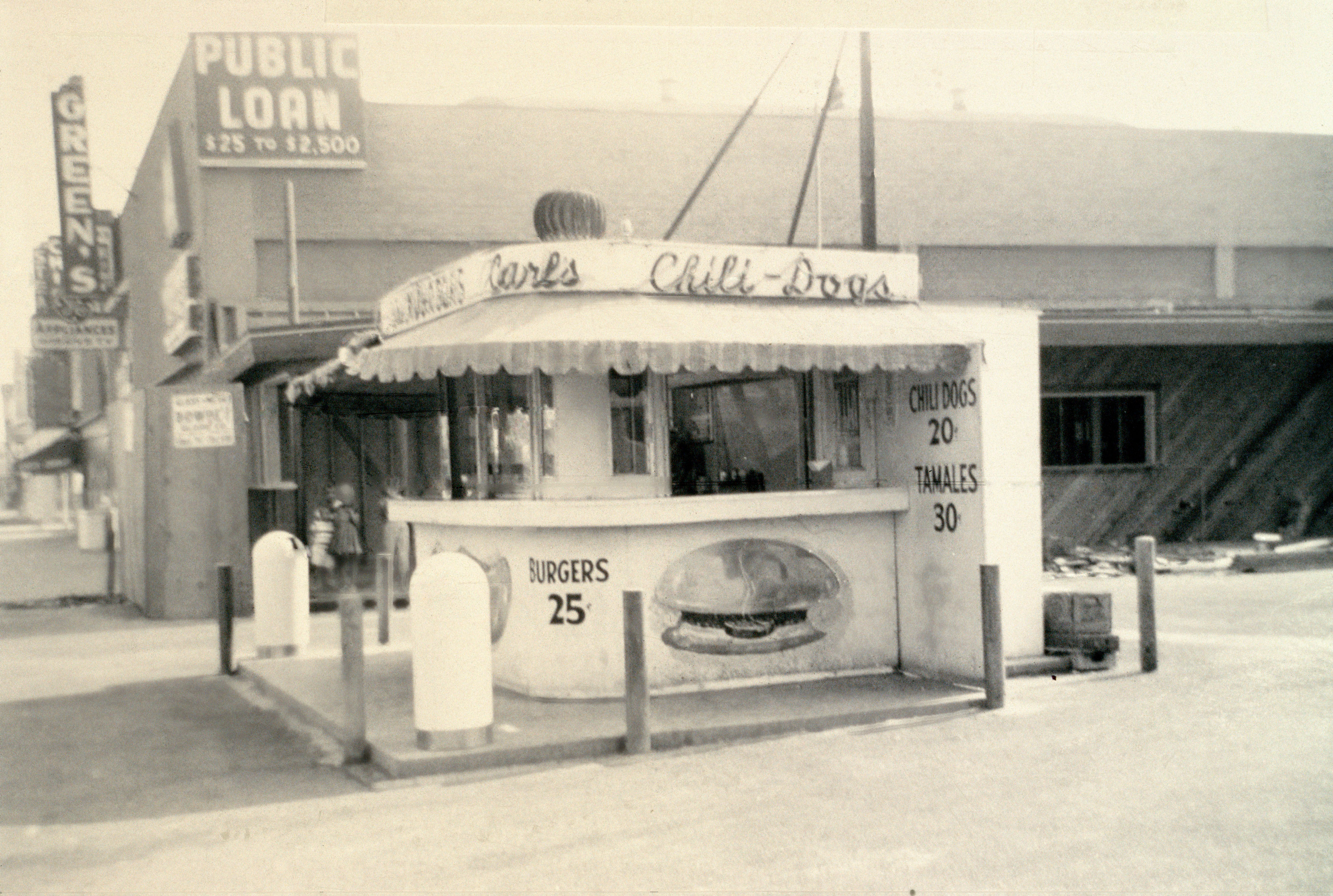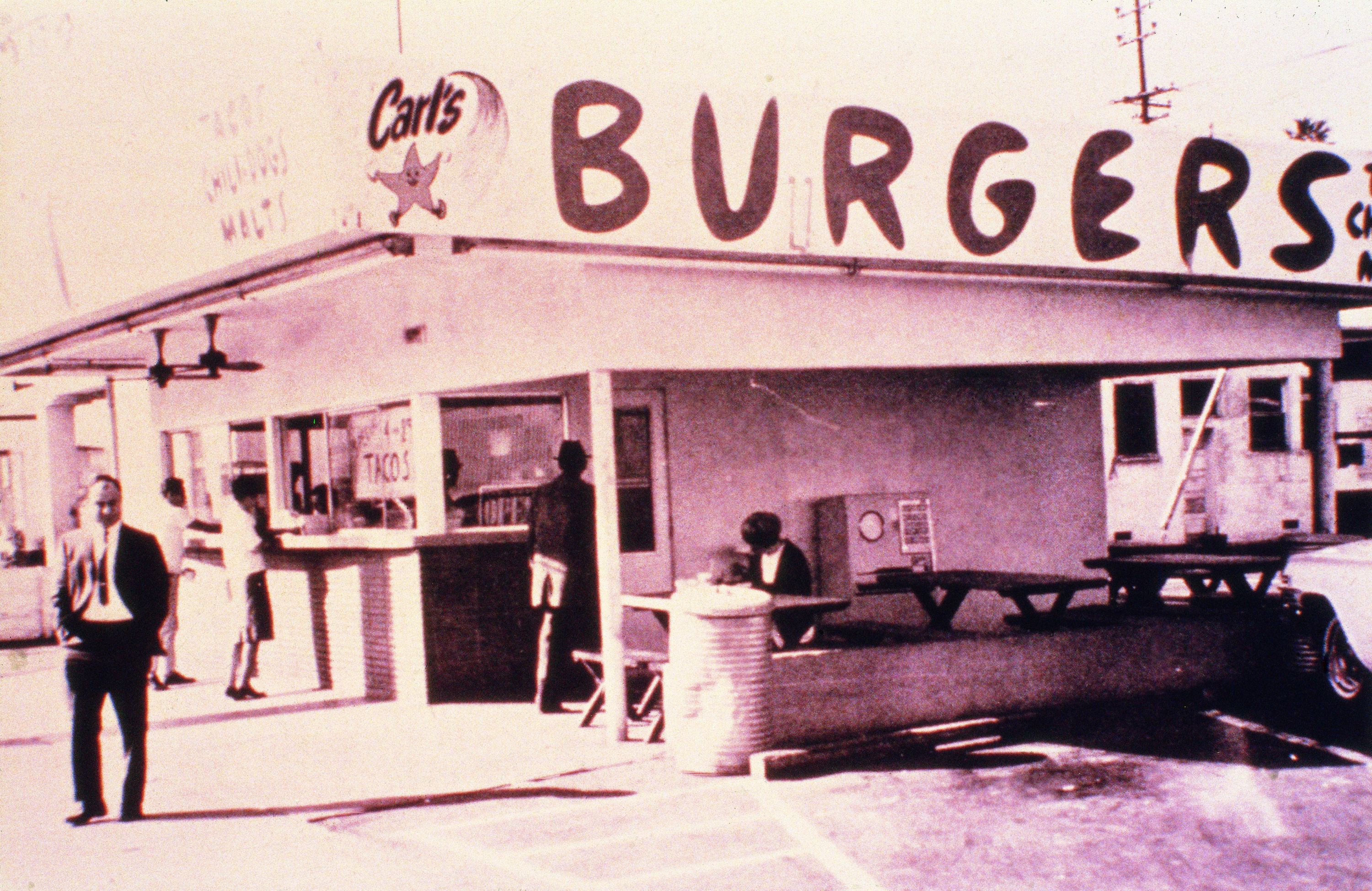 Carl Karcher and his wife Margaret invest their entire savings to buy a hot dog cart. Within five years, the Karchers open their first restaurant.